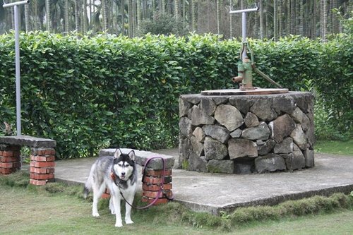 吃飽後散散步運動一下,後面...應該是會有水跑出來的古井嗎??