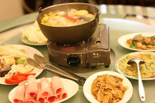 晚餐上桌囉!!今天跟老闆說我想要吃火鍋沒想到除了火鍋以外還有四菜!!@@"