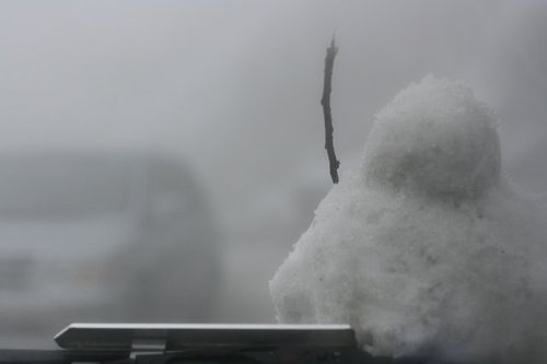 還趴在雪人旁邊看著它完全不怕冷唷!!
