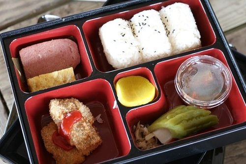 這是我們午餐的便當,有肉有蛋。BBQ還有另外烤熱狗肉排青菜還有魚。我個人覺得還不錯