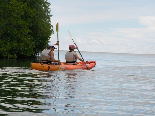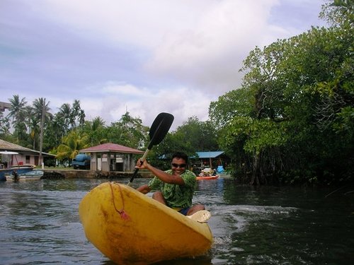 接下來換我們去北島紅樹林划獨木舟,兩人一船。一定要有男生,不然怕浪一大就划不回來