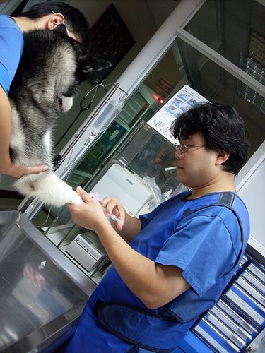 (陳醫生跟助理就馬上抱著妮卡去照X光)