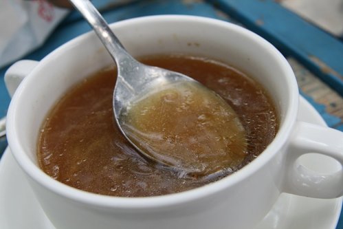 還先放在地上準備享用想也知道我們不太可能從他嘴裡拿走牛肉了 ><